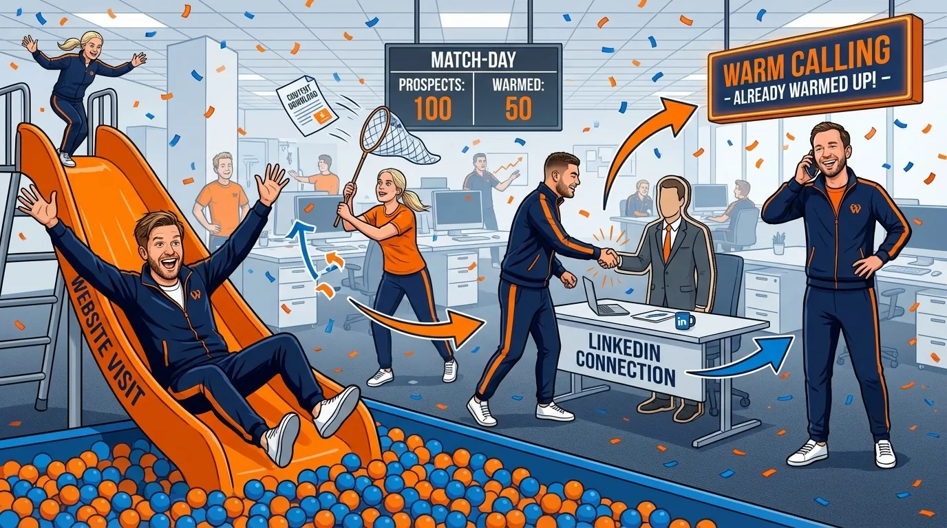 Gebruik warm calling als vervolg op content downloads, website bezoeken, LinkedIn engagement of event deelname. Wacht niet te lang – het beste moment is 24-48 uur na de interactie wanneer je bedrijf nog top-of-mind is bij de prospect.